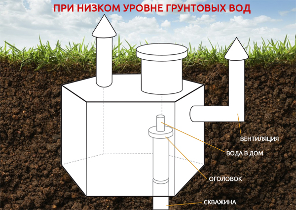 Основные достоинства кессона или контейнера — создается специальное защищенное место с целью надежной установки вспомогательного оборудования: фильтров, насосов, гидроаккумулятора или станции для очистки добытой воды.